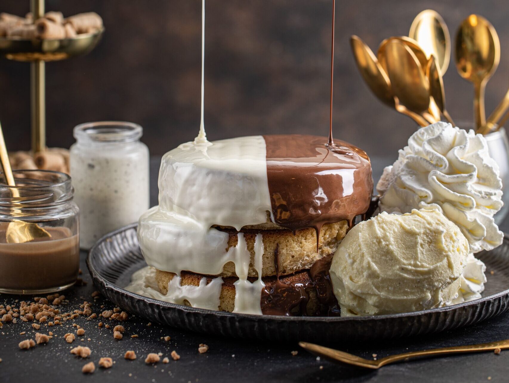 שלוש יחידות בציפוי שוקולד אגוזים ולבן